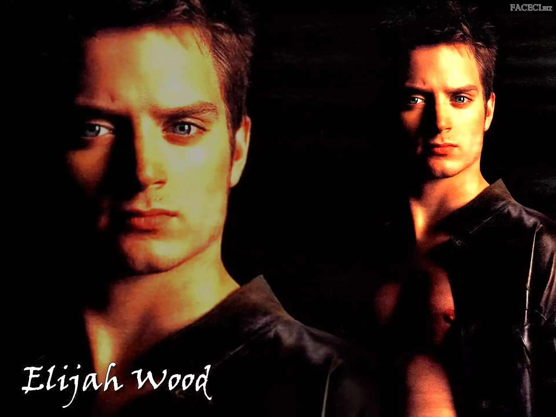 czarna koszula, Elijah Wood, niebieskie oczy - faceci.biz